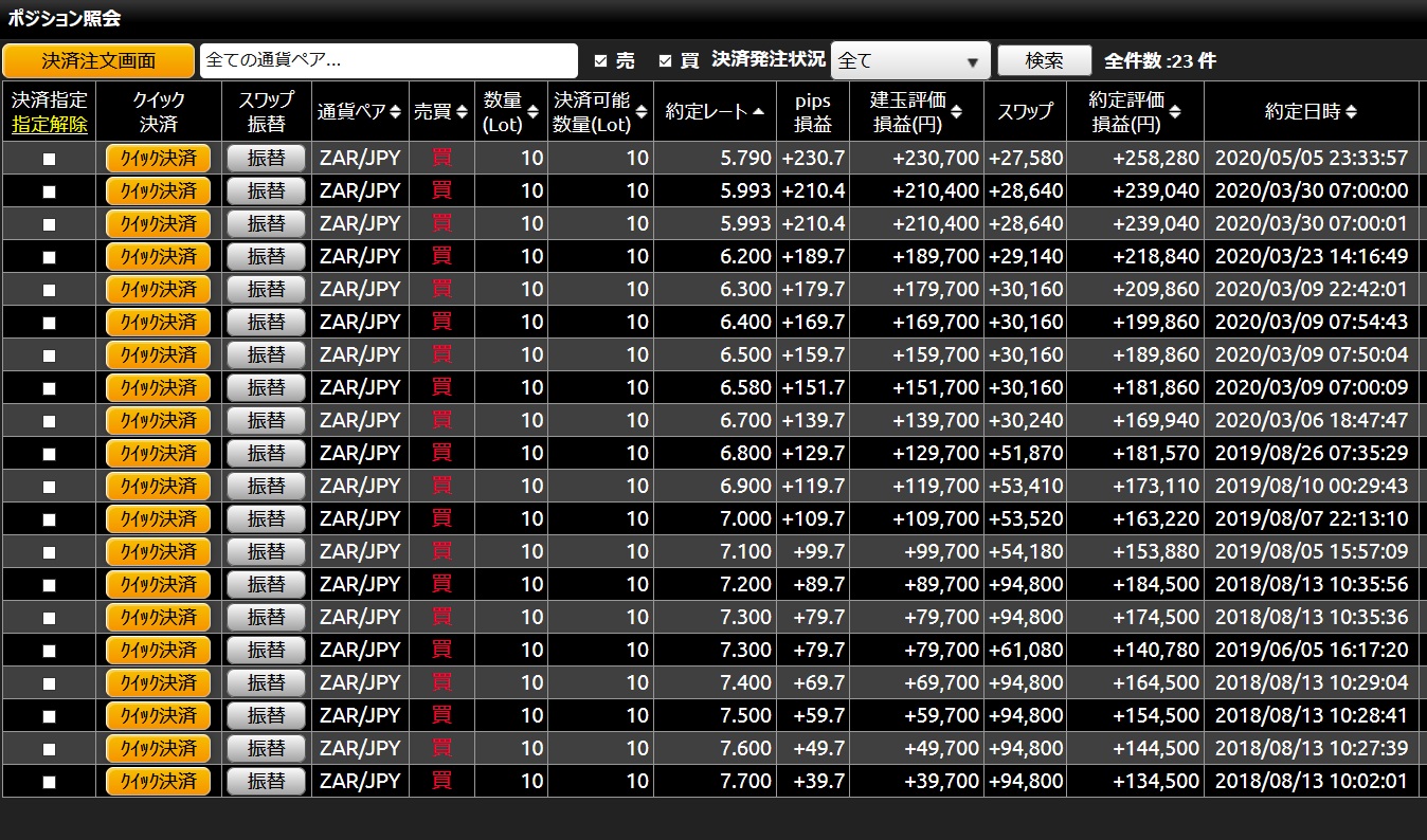私は懲りずにランドを6.9円から5.5円まで買い注文を入れてしまいましたが、賢明な皆様はFXに近寄らない方がよろしいかと思います。
