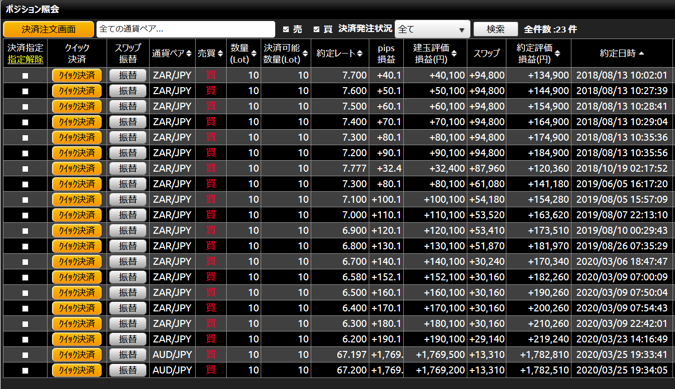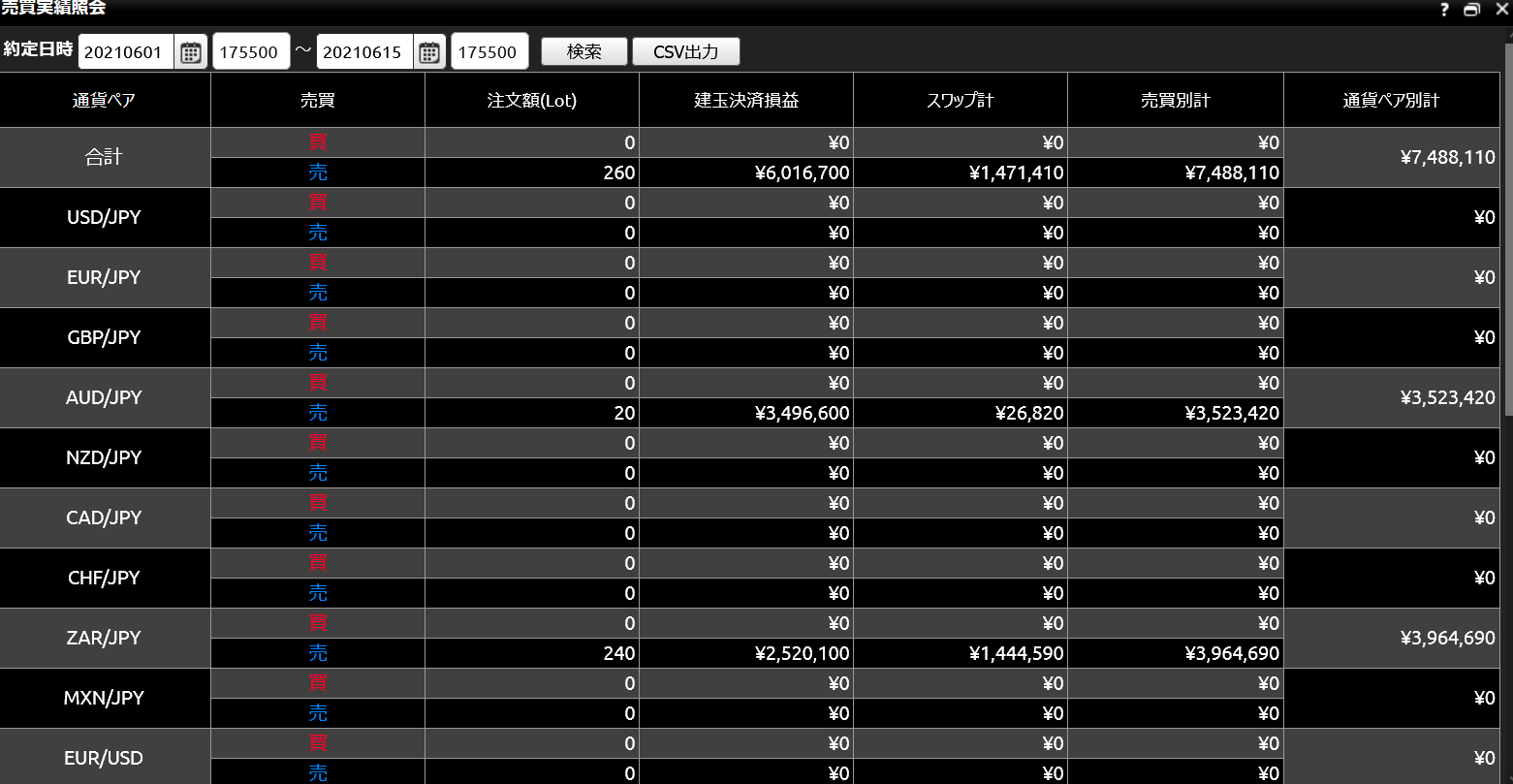約750万の利益ですが、内訳として何とスワップが約150万円も発生していました。