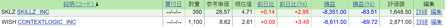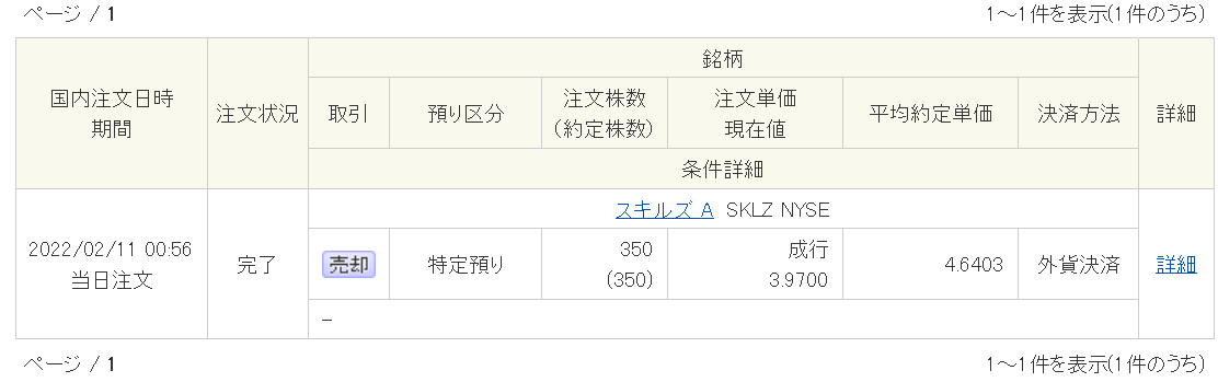 4.6403ドルで売却できましたが、本日で3.97ドル。