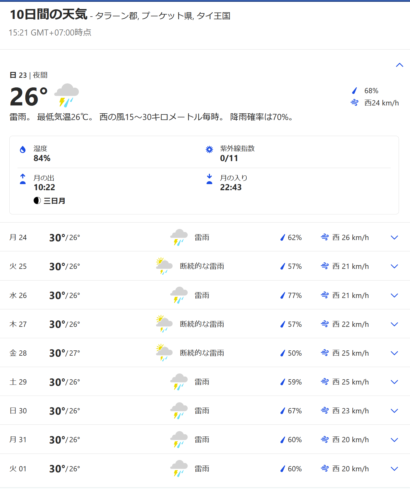 5日くらい前にいくつかの候補地と航空券運賃を調べていたところ、直前で高い運賃ばかりだったのですが、バンコク往復にピンポイントで安い日があったのでちょっと足を伸ばしてプーケットにしてみました。
