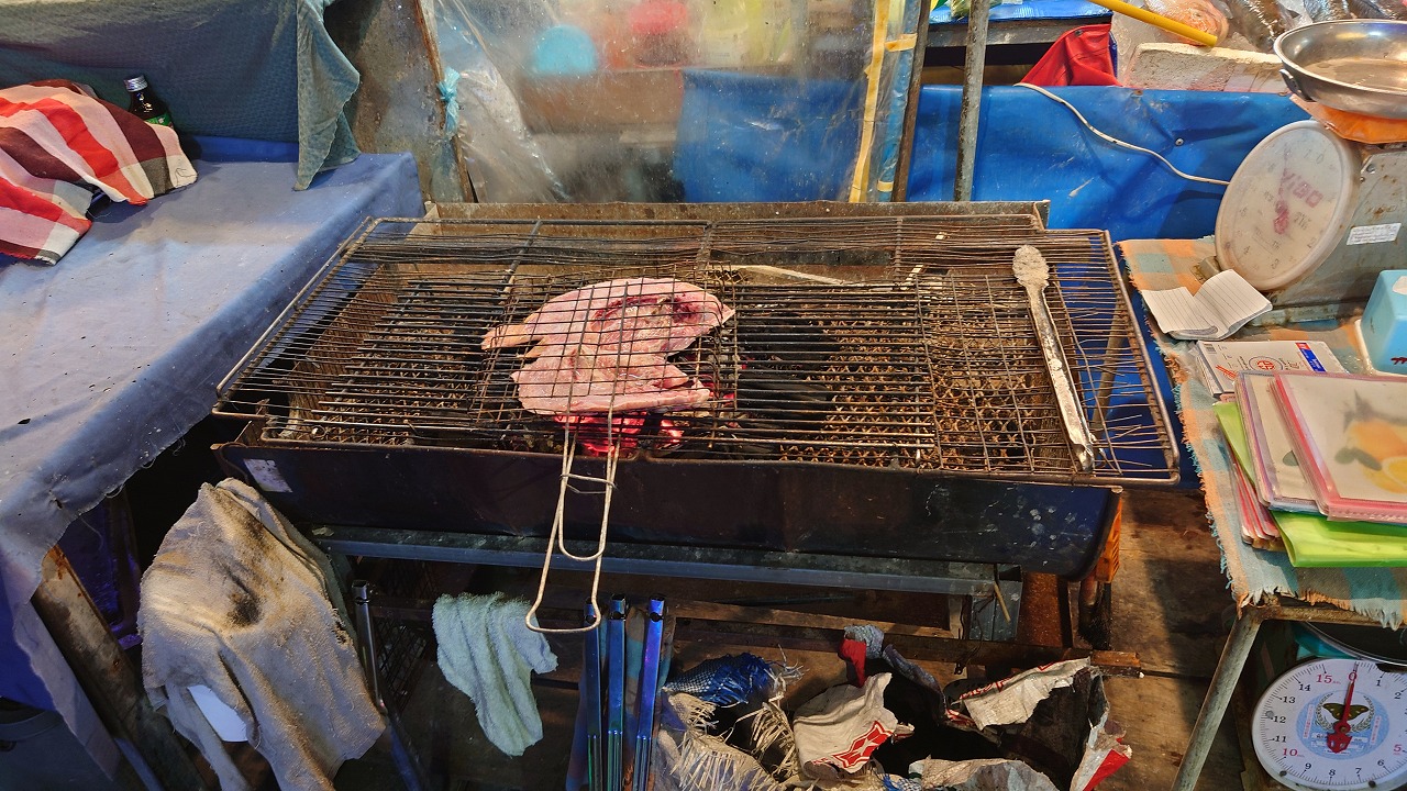 奥に焼き台があります。調理法は選択式だったのでBBQを選択しました。ちなみに1,200円くらいです。