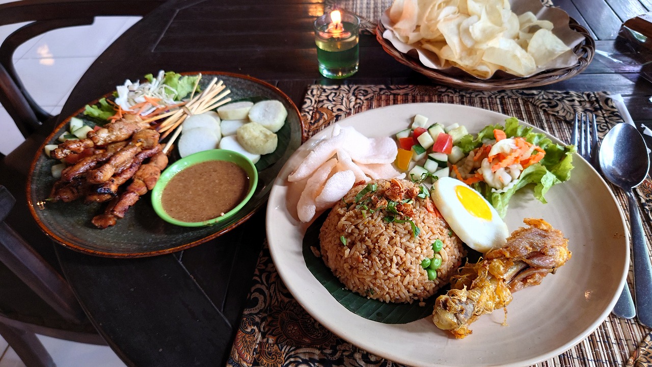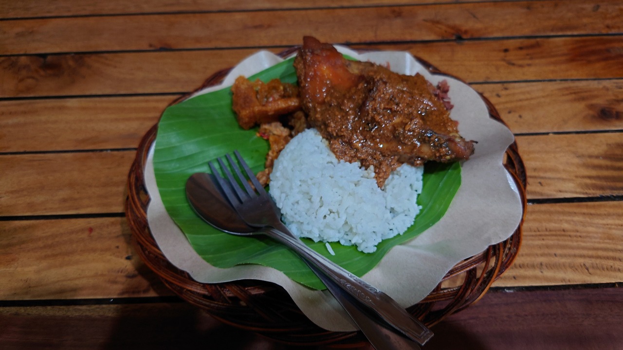Gudeg(グデグ):お米を若いジャックフルーツをココナッツミルクで調理して作ります。ご飯は甘いですが、その他具材は甘かったり辛かったりしました。