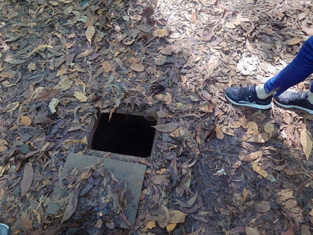 落ち葉に隠された狭い入口。私でもギリギリ入れました。ここは入るだけでトンネル探索はできません。