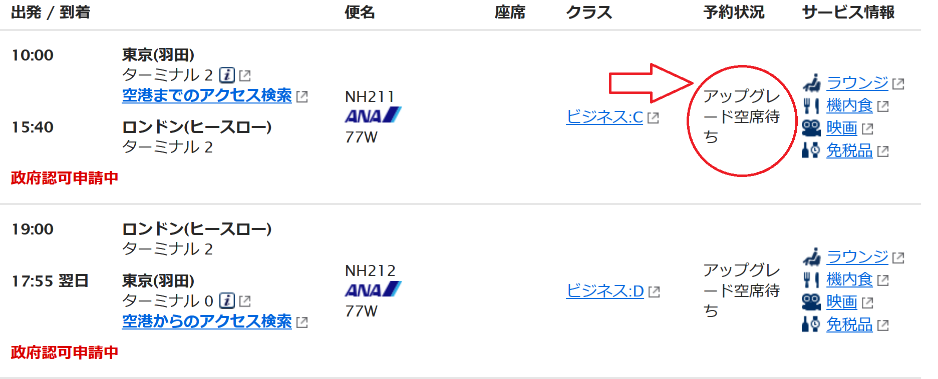 これって、当日に空席があったらアップグレードするって意味なんですね。