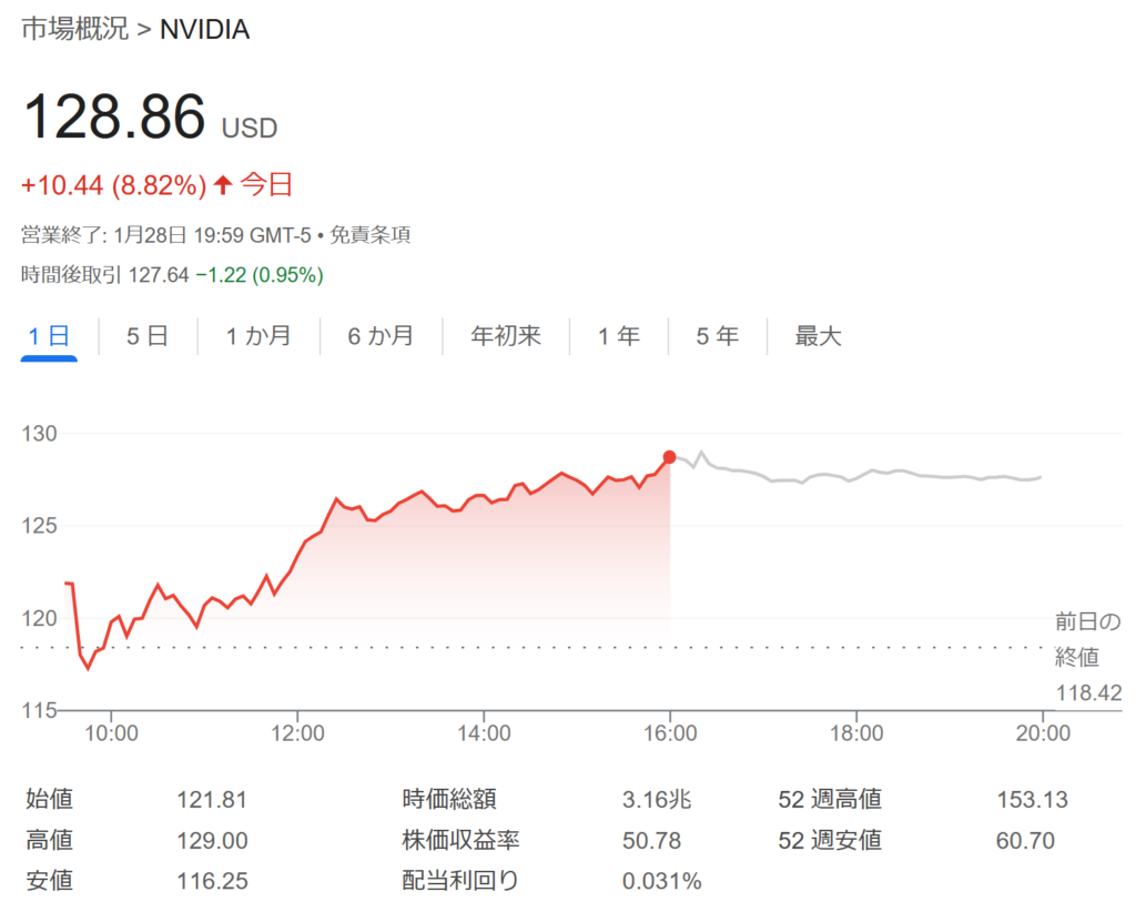 NVIDIAが暴落したと世間では騒がれておりますね。