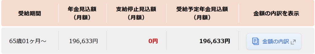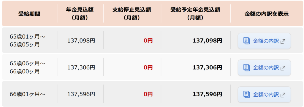 この状態で65歳の前月まで行くと年金はこんな感じです