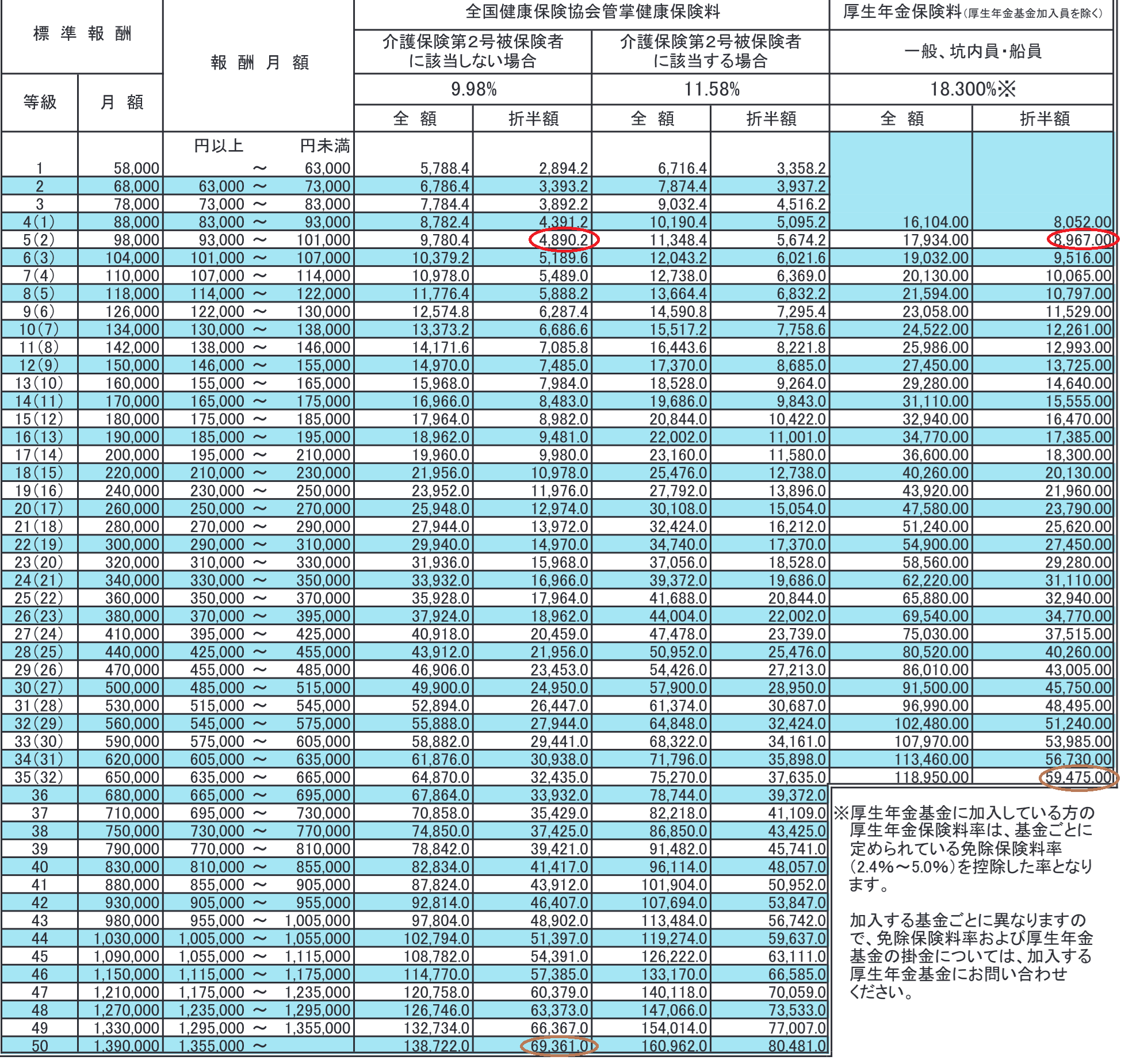 現在の私は赤丸の4,890円ですが、実際の年収ベースだと茶丸の69,361円。